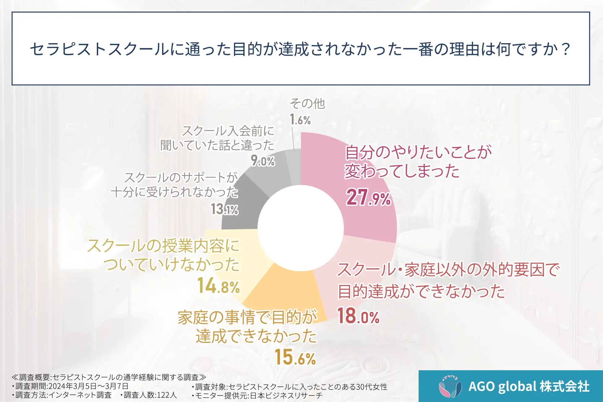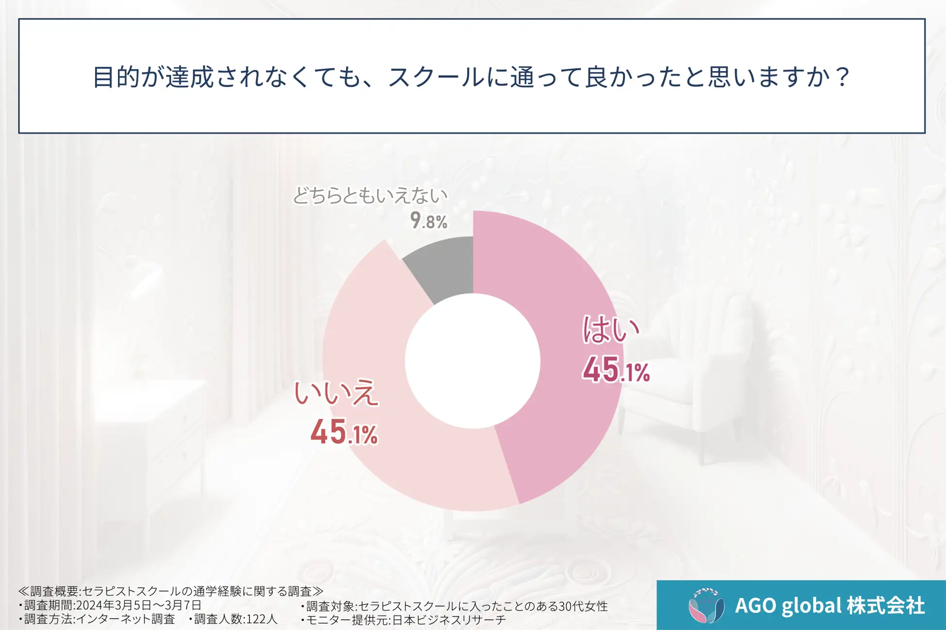 今回の調査により、セラピストスクールに通学経験のある女性の約6割が目的を達成していることが明らかになりました。